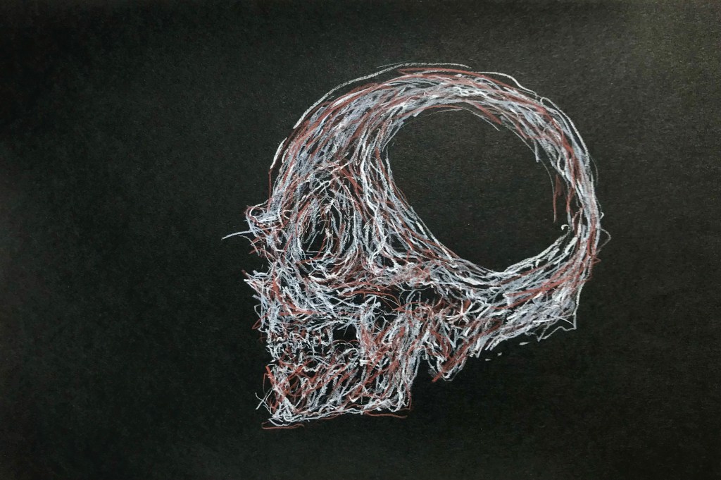 In preparation for the paintings, I made a lot of drawings. As I experimented with different styles, the drawings took on a life of their own. They began as quick, spontaneous gestural efforts, first in chalk pencil, then oil pastel pencil.